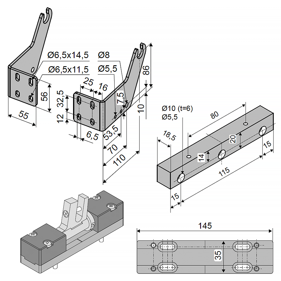 - F54: konsola skrzydłowa (aluminium anodowane E6/C-0), zawiera: