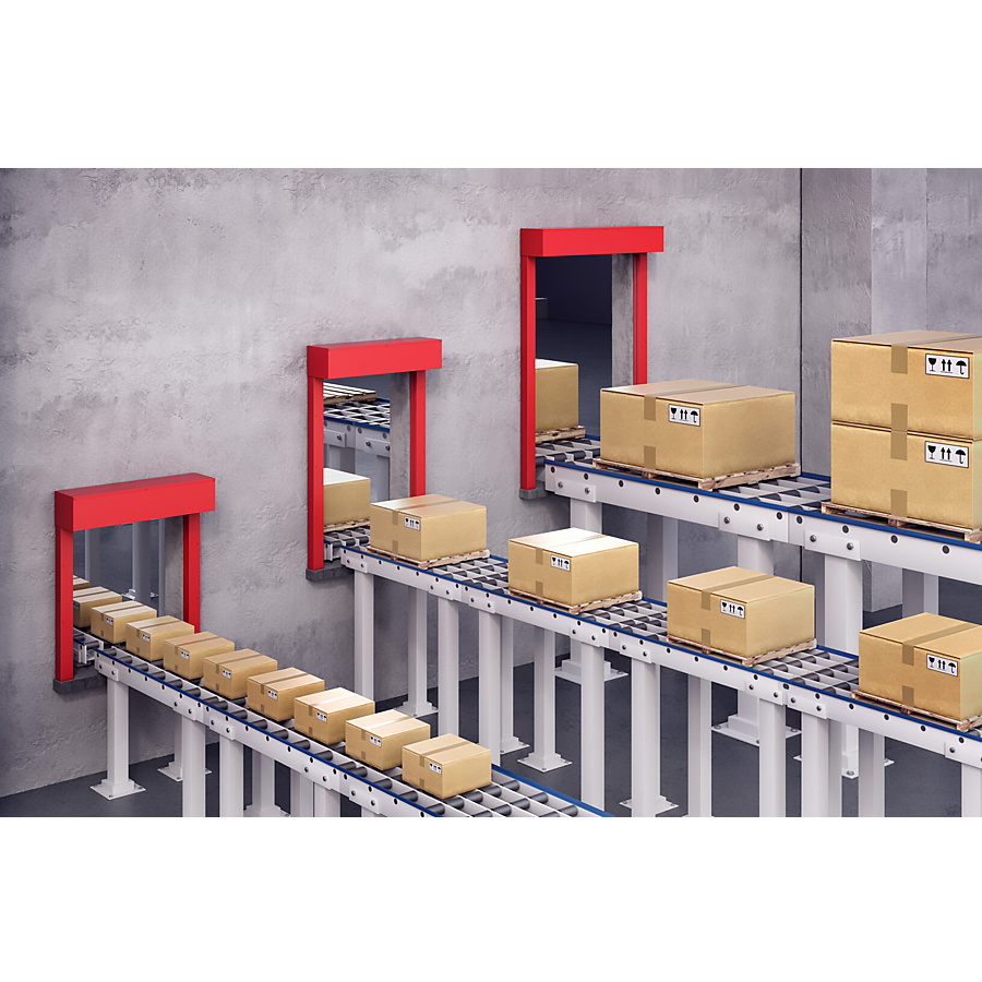 Zamontowane na linii transportowej czujniki, w razie potrzeby, przyśpieszają, hamują lub cofają przemieszczane produkty, tak, aby światło bramy pozostało puste.