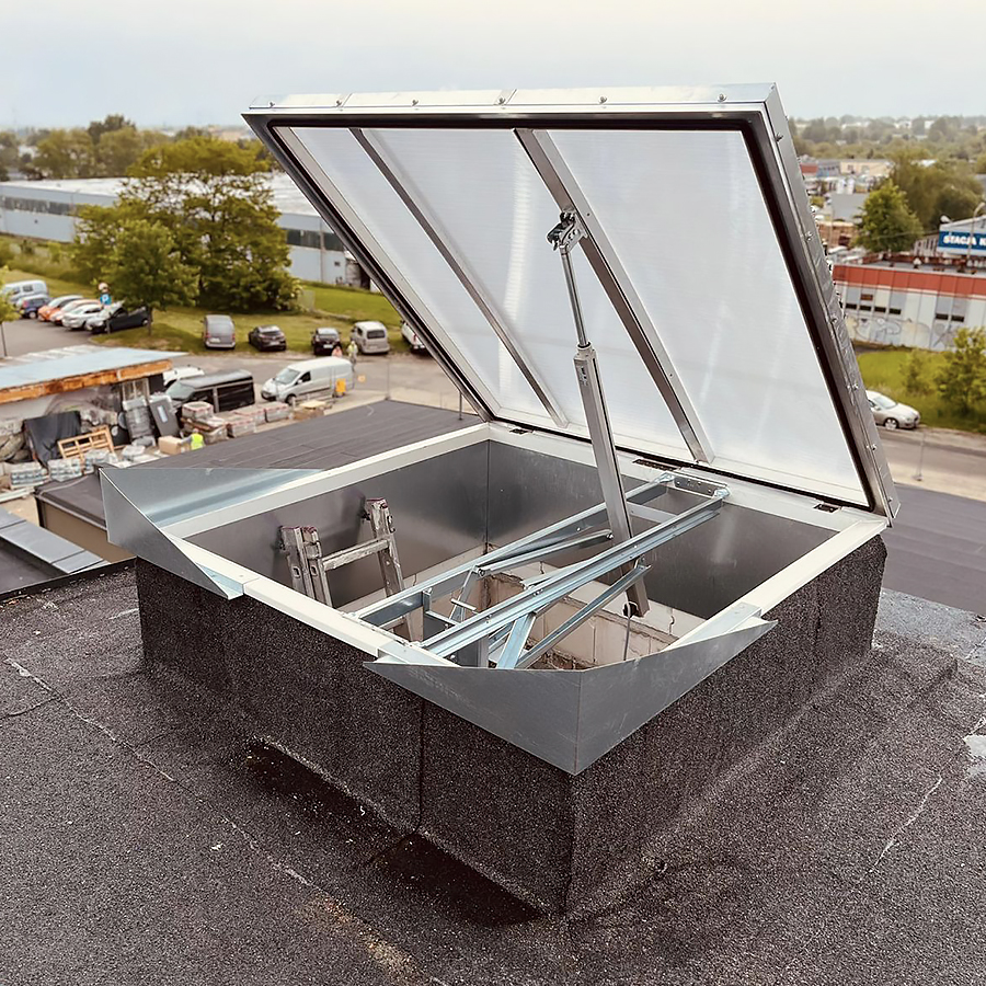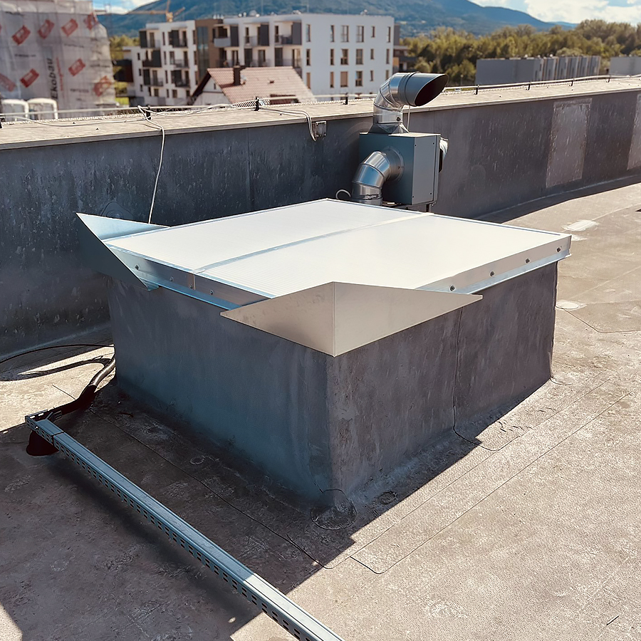 Wykorzystywane w systemach oddymiania grawitacyjnego do zmniejszania temperatury pod dachem, opóźniania rozprzestrzeniania się pożaru, ułatwienia ewakuacji i akcji ratunkowych. Działają również jako system doświetlania i wentylacji codziennej.